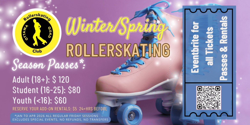 Ottawa Quad Sessions are all about fun on eight wheels. Any style, all levels, no instruction, lots of watch-and-learn. We quad to tunes. Always.
